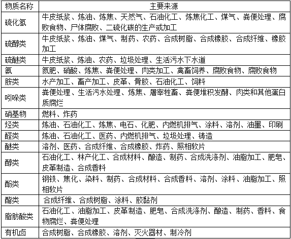 恶臭物质的来源相当广泛,主要可分为动植物体泌污染源、生活污染源及工业污染源三类。动植物体泌污染源主要指脚臭、腋臭、口臭等。生活污染源主要来自厕所、卫生间、垃圾桶、下水道等地方。工业污染源是恶臭污染发生的主要来源。污水处理厂、肉产品加工厂、造纸厂及石油化工企业都会产生严重恶臭。