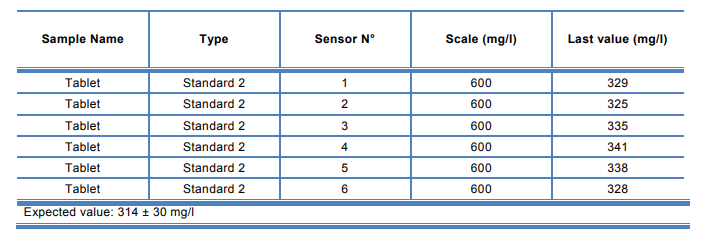 为了检查完整的BOD EVO传感器系统,可以使用测试片(代码A00000136),执行类似于BOD方法的耗氧量实验。引入片剂,试验中一定量的氧气被化学吸收。因此,瓶内可重复的负压增加,可用于系统检查。BODSoftTM软件,它可以在24-48小时后读取测试值,这个值应该保持5天不变。这样就可以对整个BOD系统进行测试,包括搅拌系统、培养箱、正确的密封和校准完整的压力测量系统传感器。